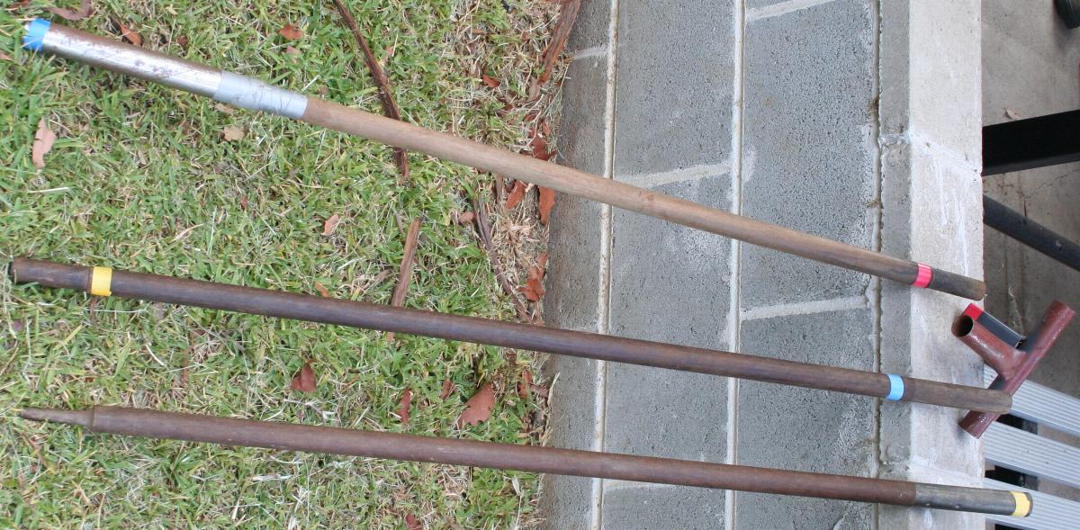 ![]() This is the combination of poles used for the centre uprights in the adjacent picture of the white dining fly Note that the knuckles and some poles are also required for the mess tent. Colour-coded tape markings indicate hopw each set joins. |
